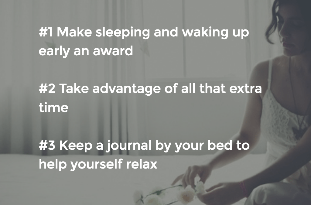 Make sleeping and waking up early a reward. Yes, it might seem at first that you’re forcing yourself to do something hard, but if you make it pleasurable, soon you will look forward to sleeping and waking up early. A good reward is to make a hot cup of coffee or tea and read a book. Other rewards might be a tasty treat for breakfast (smoothies! yum!) or watching the sunrise, or meditating. Find something that’s pleasurable for you, and allow yourself to do it as part of your morning routine.